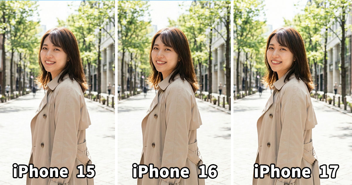 実際に同じ条件で撮り比べてみると、iPhone15と16・17では写りの安定感に違いがありました。15は明るい場所では十分きれいですが、顔を近づけたときの歪みや細部の強調がやや強く出る印象です。