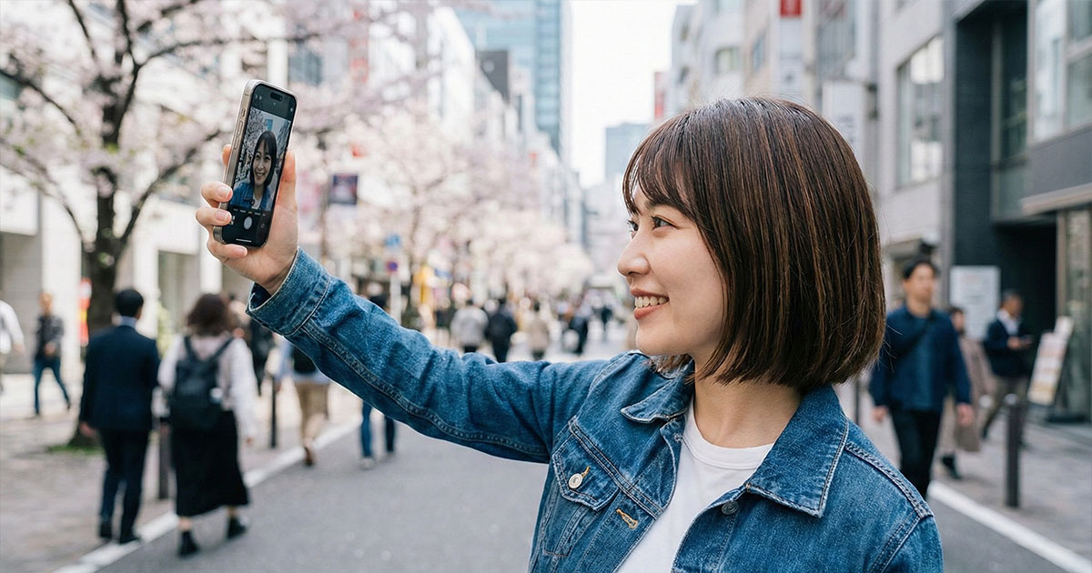 自撮りの場合は腕をしっかり伸ばし、画面いっぱいに顔を入れようとしないのがポイントです。距離を取るだけで見え方が変わるため、まず最初に試してほしい方法です。