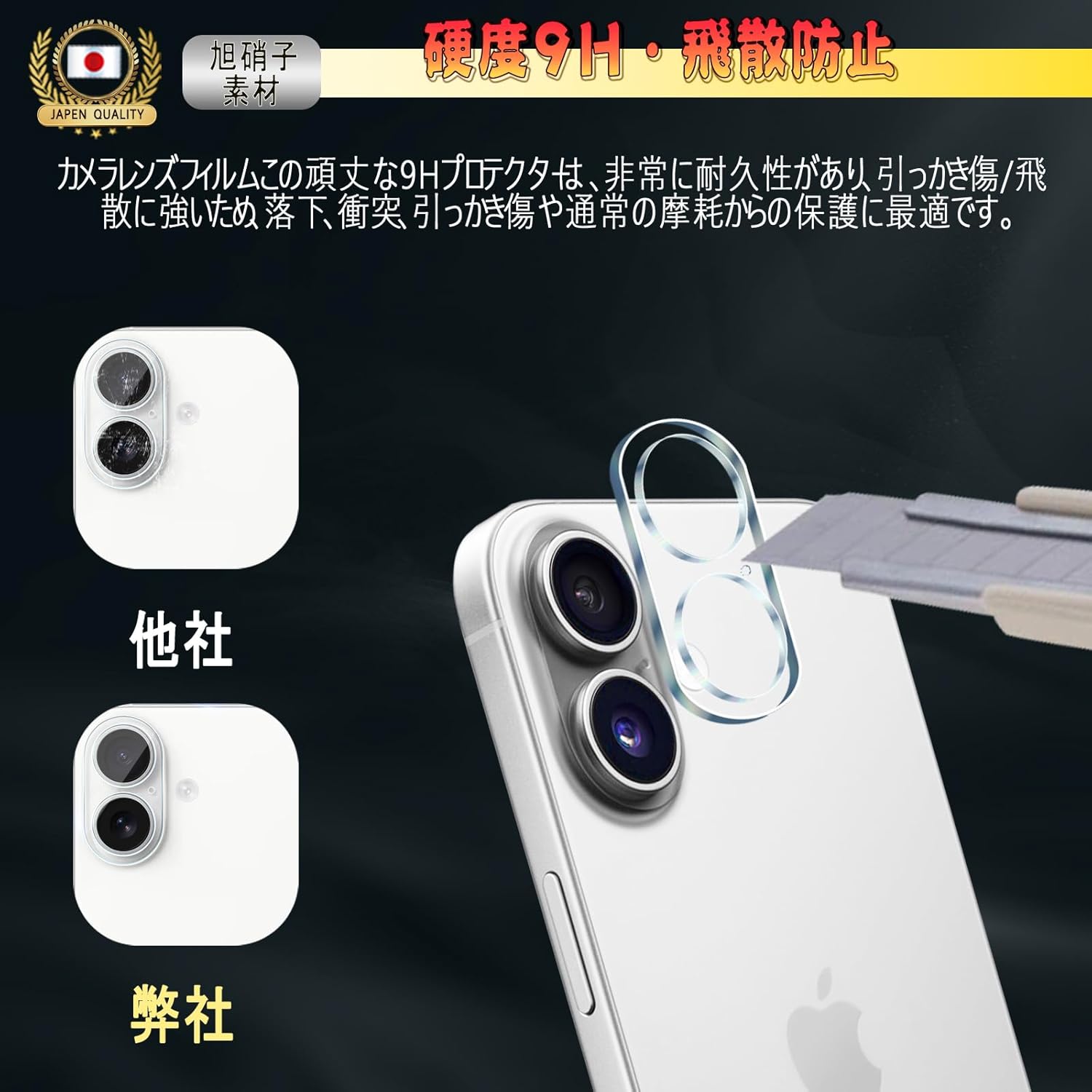 Disskewordのカメラ保護カバーは、日本製旭硝子素材を採用した9H硬度の強化ガラスで、日常の摩擦や落下からiPhone 17のカメラをしっかり守ります。
