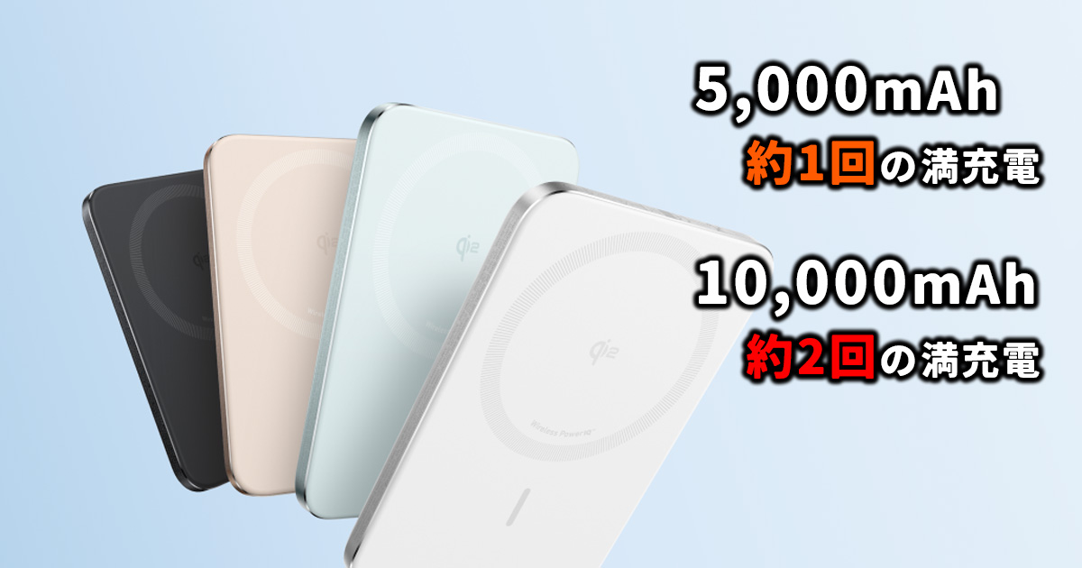 容量が大きすぎると重くかさばるため、日常用途にはこの範囲が最も実用的。ワイヤレス充電モデルなど便利機能との組み合わせで、用途に合わせた最適なバランスを取ることができます。