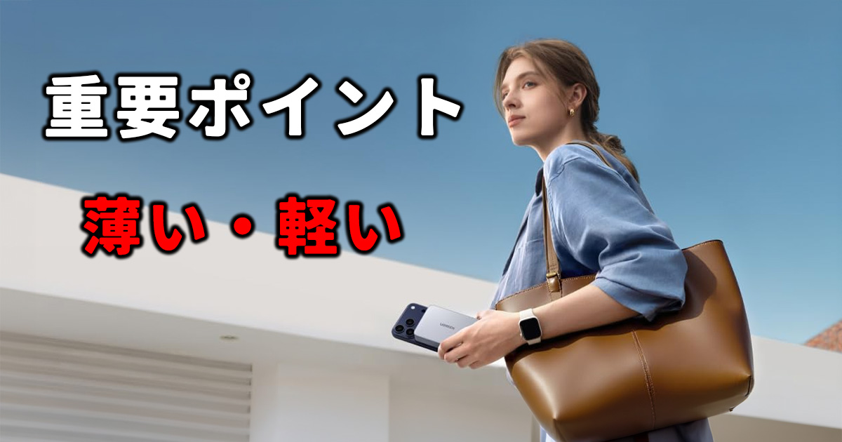 外出や旅行でiPhone17 Proを多用するユーザーにとって、モバイルバッテリーの「薄さ・軽さ」は満足度を大きく左右します。厚みのあるモデルは持ちながらの操作がしにくく、ポケットやバッグでかさばる一方、薄型・軽量モデルなら装着したまま快適に操作でき、荷物のストレスも激減します。