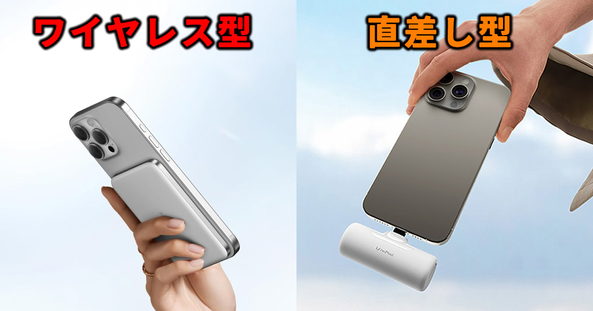 モバイルバッテリーは「ワイヤレス型」と「直差し型」で使い勝手が大きく変わります。