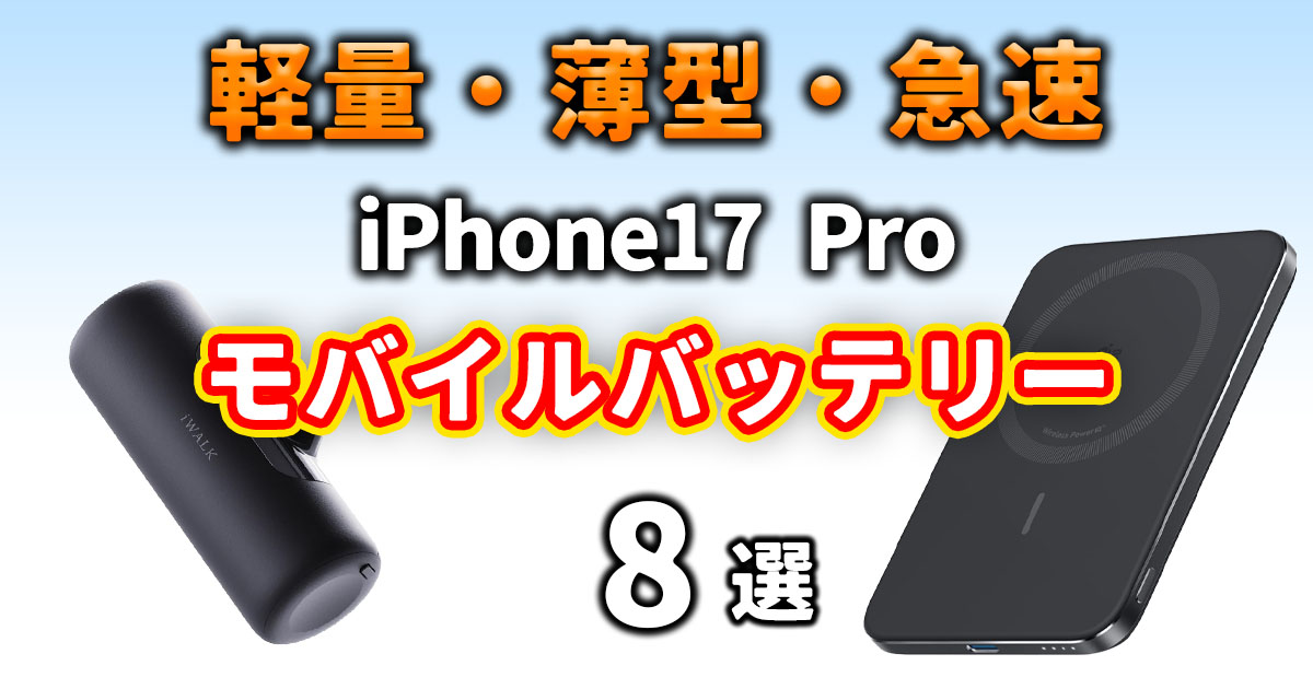iPhone17 Proは性能が上がった一方で、長時間の外出や旅行ではバッテリー消費が早く、「思ったより電池が減る…」と感じる人が増えています。特に写真・動画撮影、5G通信、マップ利用が重なると1日持たないことも。本記事では、iPhone17 Proに相性の良い「軽い・薄い・大容量・高速充電」のモバイルバッテリーだけを厳選し、実用性の高い8モデルを紹介します。持ち運びやすさ、充電速度、デザイン性のバランスを重視して選んでいるため、初めて買う人も買い替えを考えている人もぜひ参考にしてください。