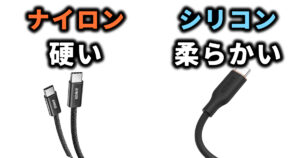 シリコン素材は非常に柔らかく、絡まず扱いやすいのが魅力で、バッグやポケットに入れてもスッと広がりストレスがありません。ただし耐久面ではナイロンに一歩劣る場合もあります。使用シーンや好みに合わせて素材を選ぶことで、快適に長く使えるケーブルを選べます。