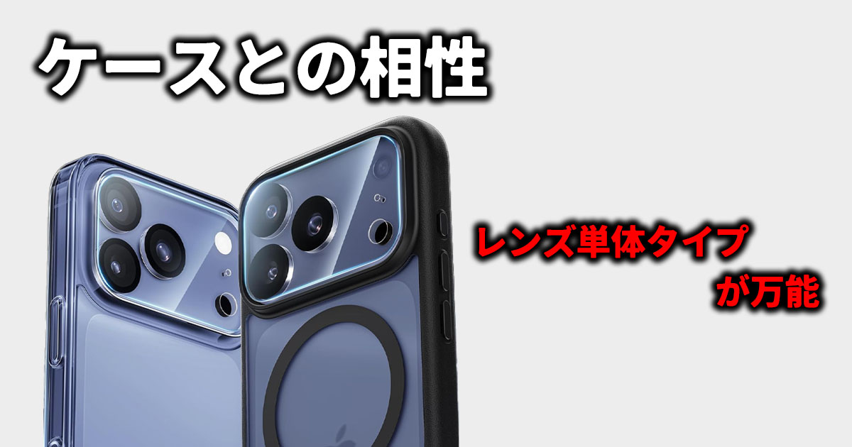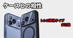 ケースとの干渉に心配を抱えている場合は、下記の記事ではケースとの相性や、9割のケースで干渉しない薄型カメラカバーを合わせて確認できます。