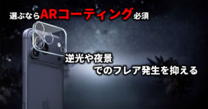 黒縁なしカメラカバーを選ぶ場合は、いくつかの条件を必ずチェックしてください。まず重要なのが高透過ガラスであること。数値で明示されている製品のほうが、画質への影響を抑えやすい傾向があります。次に、AR(反射防止)コーティングの有無。これがあることで、逆光や夜景でのフレア発生を大きく減らせます。