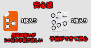 カメラフィルムの貼り付けに慣れておらず、位置ズレやホコリ混入が心配な人は2枚入りが安心です。実際、貼り直しができない1枚入りでは、失敗した瞬間に買い直しになるケースも少なくありません。2枚入りであれば、万が一ミスしてもやり直しができ、精神的な余裕を持って作業できます。貼り付けが不安=2枚入りは、後悔しにくい王道の選択です。