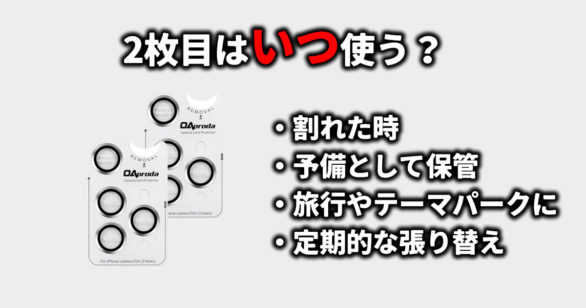 2枚目を使うタイミングは、貼り付けに失敗した時や、長期間使って細かなヒビ・傷が気になってきた時です。旅行やテーマパークなど使用頻度が高いイベント前に貼り替える人も多く、予備があることで心理的な安心感も得られます。すぐ使わなくても「万が一の保険」として持っておける点が、2枚入りの大きなメリットです。
