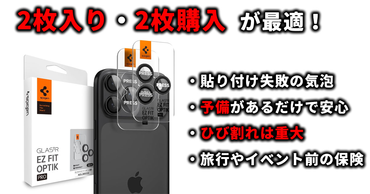 iPhone17 Proのカメラフィルムは1枚でいい?2枚入りとの違い