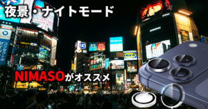 NIMASOはレンズ周囲を黒縁仕上げにすることで、フラッシュ時や夜景撮影時の内部反射を抑制。ARコーティングによる高透過設計も相まって、暗所でもコントラストが崩れにくく、ゴーストの発生を大幅に低減します。「夜の写真がにじむのが嫌」「ナイトモードの解像感を落としたくない」人には、安定感のある選択肢です。