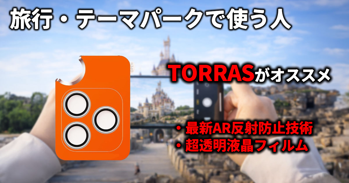 TORRASは最新AR反射防止技術と超透明液晶フィルムを組み合わせ、光の透過率99.2%を実現。さらにZRコートと墨塗り加工により、フレアやゴーストを徹底的に排除します。昼夜を問わず色の階調が安定し、人物も風景も「見たまま」に近い描写を残せるため、SNS投稿や思い出撮影が多い人に向いています。