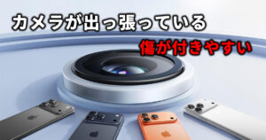 iPhone17 Proは耐久性が高いとはいえ、落下や何かにぶつかった衝撃がカメラ周りに集中しやすい点には注意が必要です。特に角から落とした場合、最初に当たるのが出っ張ったカメラ部分になることも多く、レンズ周辺のガラスやフチが欠けるリスクがあります。