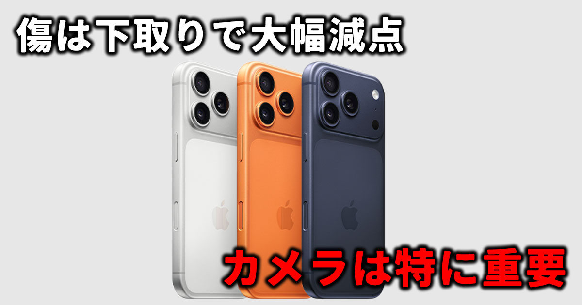 iPhone17 Proを将来下取りや売却に出す場合、カメラ周りの状態は査定で特に厳しく見られるポイントです。本体がきれいでも、レンズ部分に傷や欠けがあるだけで減額対象になることは珍しくありません。