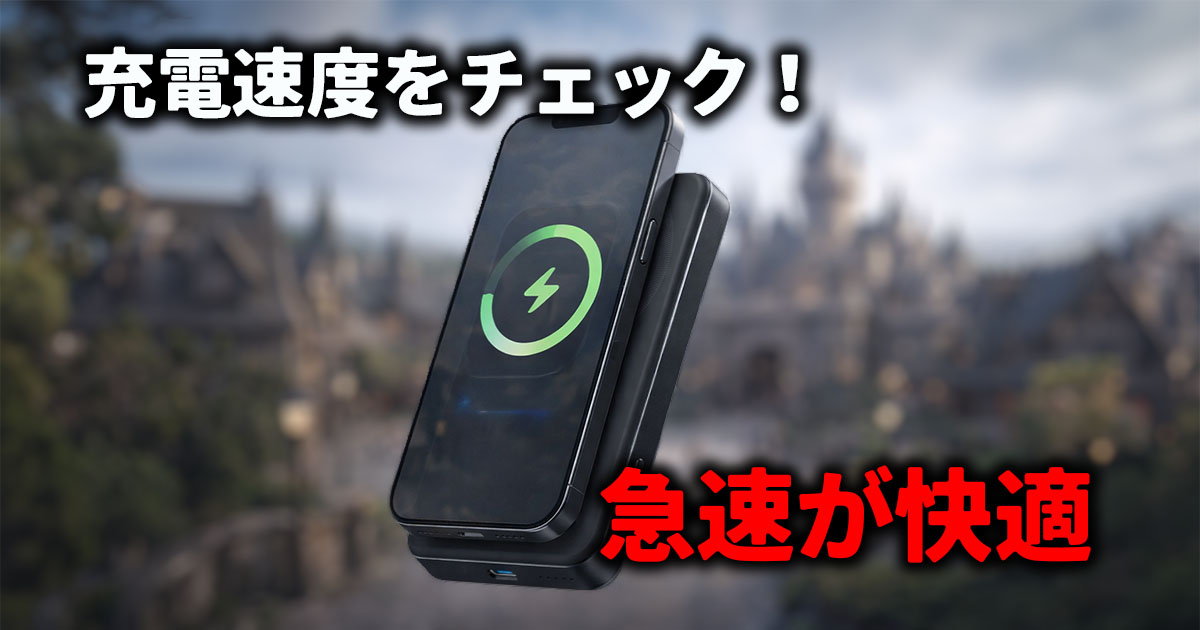 ケーブル充電は安定した速度で回復でき、夜や閉園前の残量確保に有効です。軽さと手軽さを取るならMagSafe、確実性を取るならケーブルという視点で考えると失敗しにくくなります。