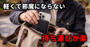 どれだけ性能が良くても、持ち歩きが苦痛になると意味がありません。1日中バッグに入れていても気にならないサイズ感かを基準に選ぶことで、実際に使えるモバイルバッテリーになります。