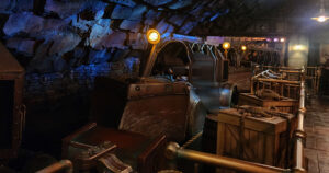 地底世界を駆け抜ける人気アトラクションも、貸切イベントでは約10分待ち。スタンバイは途切れず進むため、実質ほぼ待ち時間なしに近い状態でした。