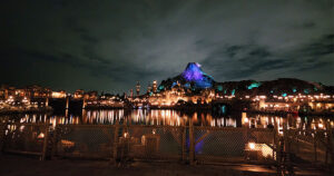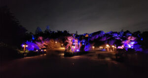 オープニング演出が始まると、一気に貸切イベントの特別感が高まり、ライトアップされた火山やアクアスフィアの前で写真を撮る人も多く見られました。普段なら混雑するこの時間帯でも、スタートからゆったり動けるのが貸切イベントの魅力です。