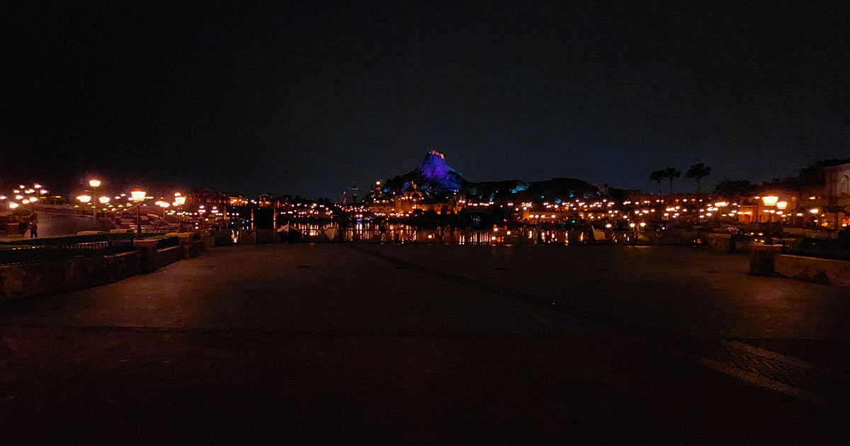 夜のディズニーシーは元々ロマンチックですが、貸切イベントではその雰囲気がさらに際立ちます。場内は落ち着いた照明で統一され、夜景の美しさが一段と際立ち、普段より静けさがあるため、波の音やBGMがより鮮明に感じられました。メディテレーニアンハーバー周辺やファンタジースプリングスの入口などは写真映えするスポットが多く、貸切だからこそ人を気にせず撮影できるのが魅力。