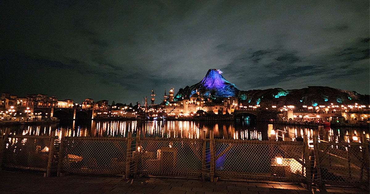 ディズニーシーの貸切イベントは、入園時から通常営業とは明らかに違う静けさがありました。エントランスは行列がほとんどなく、手続きもスムーズで、ストレスなく入場できるのが大きな特徴です。手荷物チェックも短時間で完了し、入場直後のプロメテウス火山周辺も人がまばら。開園直後特有の『走る列』のような動きもなく、落ち着いた空気が漂っていました。