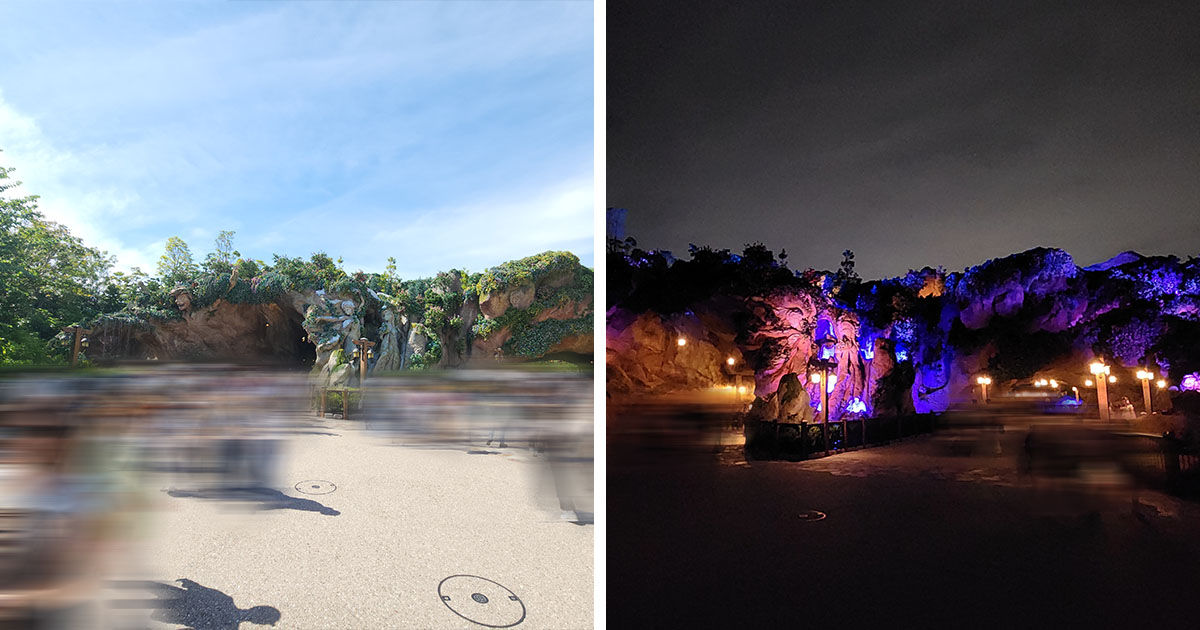 オープニング演出が始まると、一気に貸切イベントの特別感が高まり、ライトアップされた火山やアクアスフィアの前で写真を撮る人も多く見られました。普段なら混雑するこの時間帯でも、スタートからゆったり動けるのが貸切イベントの魅力です。