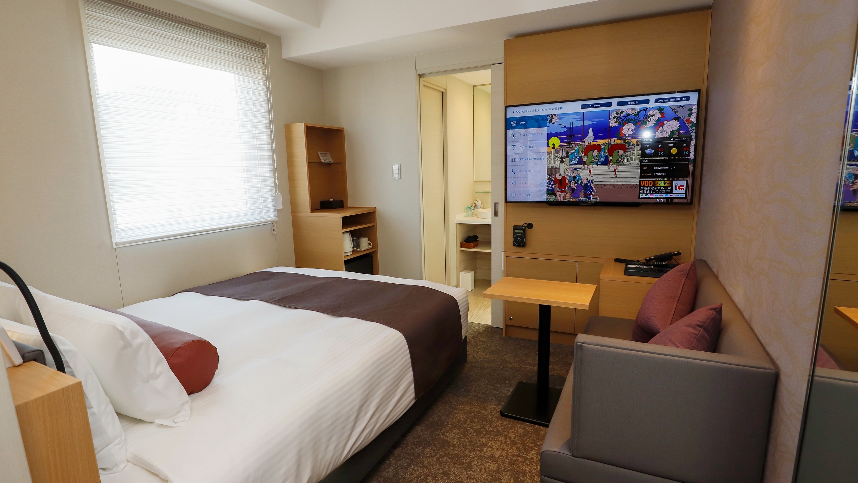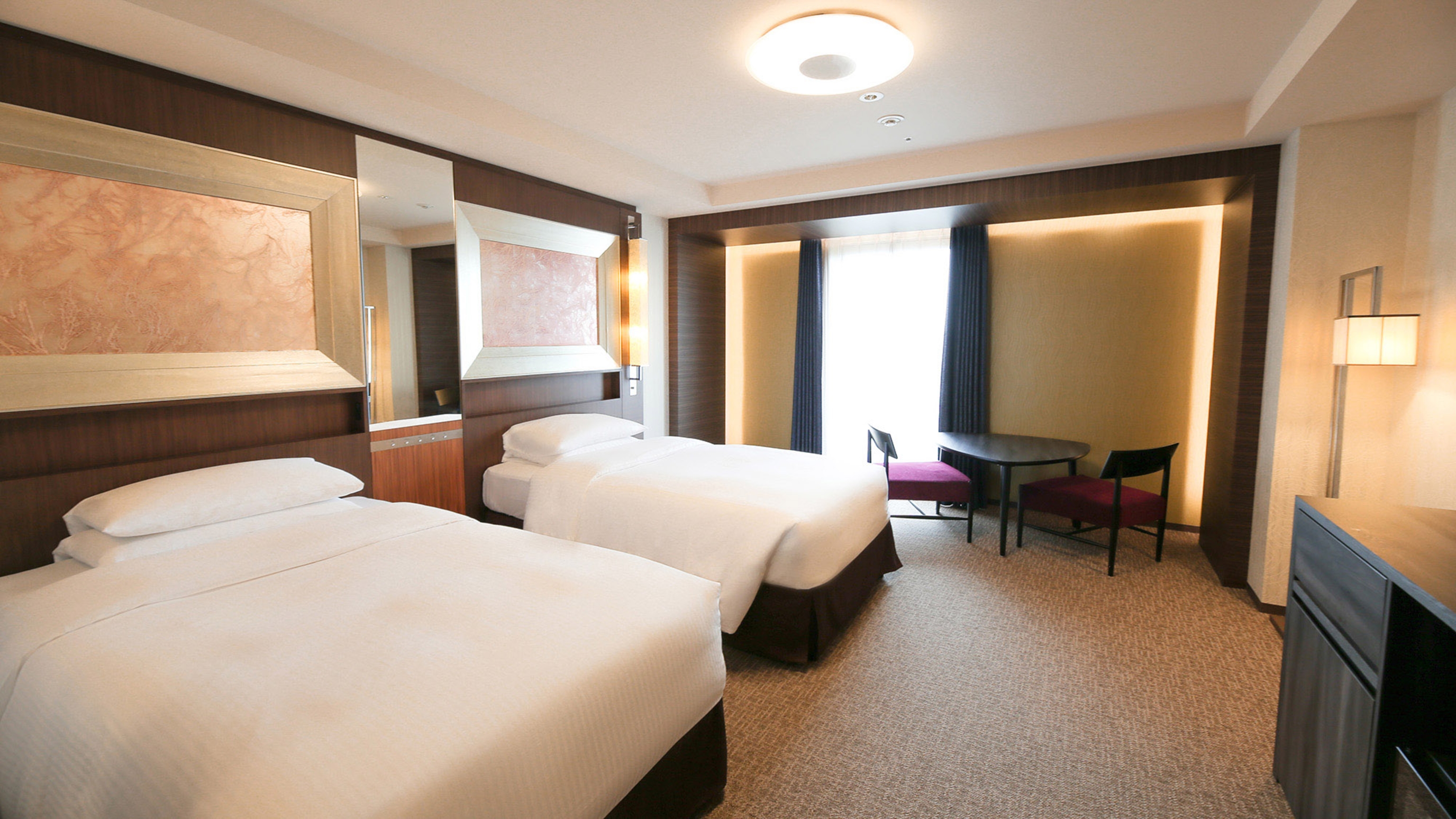 全室がバス・トイレ独立型で、ユニットバスではないため支度がしやすく、長時間の外出後でも快適に過ごせます。館内にはブッフェレストラン、専用ラウンジ、24時間営業のコンビニなど設備が充実し、コスパの高い滞在が叶います。