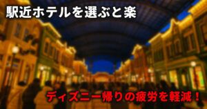 ディズニーを1日楽しんだあとは、想像以上に体力を消耗します。そのため、ホテルが駅近であることは大きなメリット。移動距離が短いだけで疲労が大幅に軽減され、荷物を持ったまま歩く負担も最小限にできます。特に閉園後は電車が混雑しやすく、最寄駅からホテルまでの距離が長いとストレスにつながりやすい点も重要。