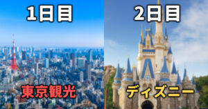 おすすめは「1泊目=都心」「2泊目=舞浜付近」という分け方です。初日は都内観光を効率よく巡り、翌日は舞浜近くに泊まれば朝の移動が短縮され、開園待ちも快適にできます。逆に“2泊とも都心”でも問題ありませんが、ディズニー中心なら“後半を舞浜エリア”に寄せると疲労が大きく軽減されます。