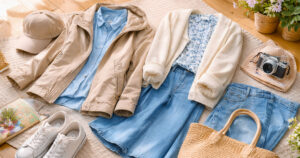 春ディズニーで服装に迷う最大の理由が、朝夕と日中の気温差です。寒さ・暑さのどちらかに寄せすぎると、一日を通して快適に過ごせなくなります。基本は重ね着を前提にした服装を選び、脱ぎ着しやすいアイテムで調整することが重要です。インナーと羽織りを分けておくことで、気温の変化にも柔軟に対応できます。