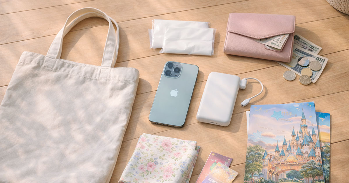 ここでは、季節や服装に関わらず春ディズニーで必ず役立つ基本アイテムをまとめました。初めての人はもちろん、何度も行っている人でも見落としがちなポイントを中心に確認していきましょう。